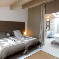 Deux lits jumeaux en 190, commode, penderie et une salle de bain privée avec baignoire îlot et WC.