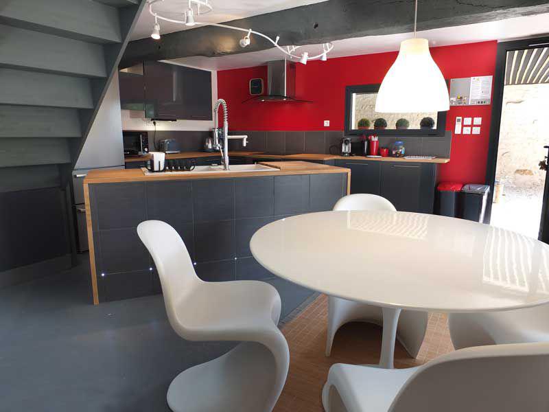 Un concept de "gîte design" associant l'authenticité d'une longère charentaise en pierres et moellons entièrement rénovée pour votre confort et meublée avec des grands classiques du mobilier design : Panton, Breuer, Starck, Eames, Bertoia, Saarinen…
