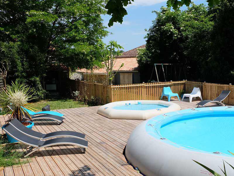 Le nouvel espace piscine partagé entre les deux gîtes avec accès sécurisé comprend un bassin de 5x5 m et un autre de 3x3 pour pour les plus petits. Un grande terrasse et ses chaises longues vous attendent…