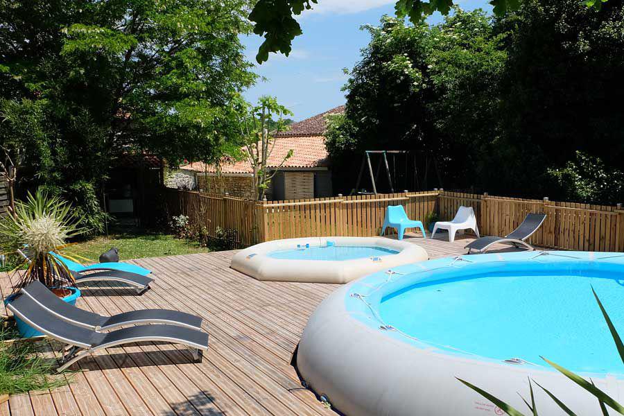 Le nouvel espace piscine avec ses deux bassins et sa grande terrasse vous attend en saison (accès sécurisé par portillon automatique).