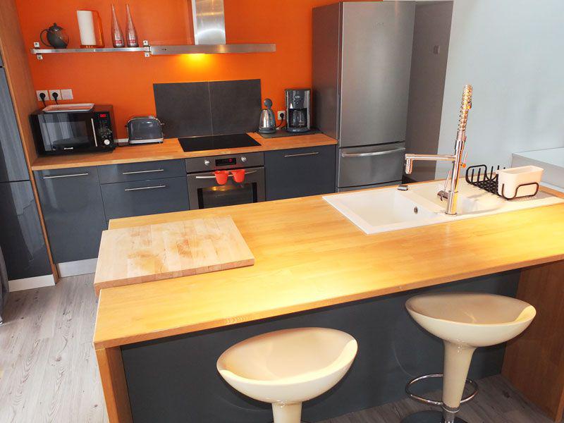 entièrement équipée : plaques induction, hotte, four pyrolyse, grand frigo congélateur à tiroir, micro-onde, Lave linge et lave vaisselle silencieux, bouilloire, grille-pain, cafetière, machine à café Nespresso®…